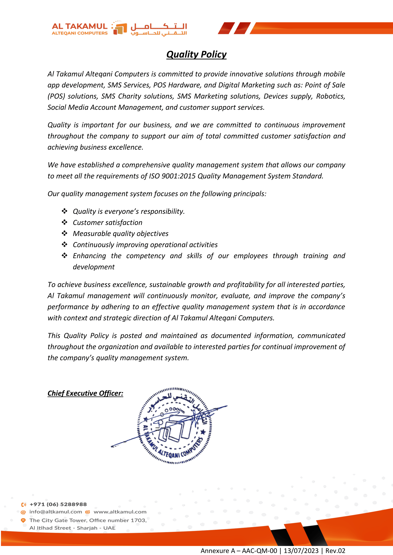 Periodic monitoring of Quality Management System and strives for continual improvement in all areas.